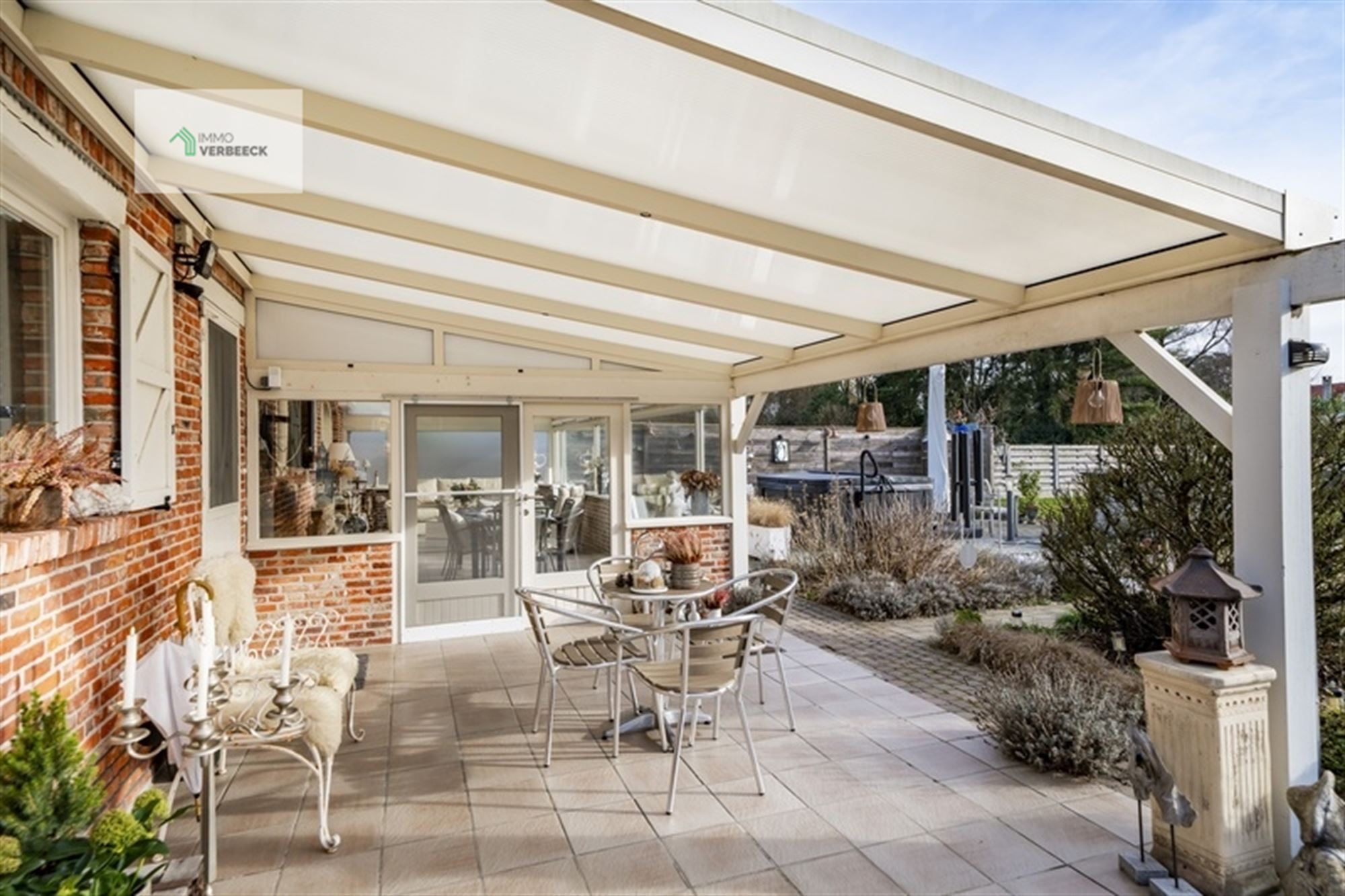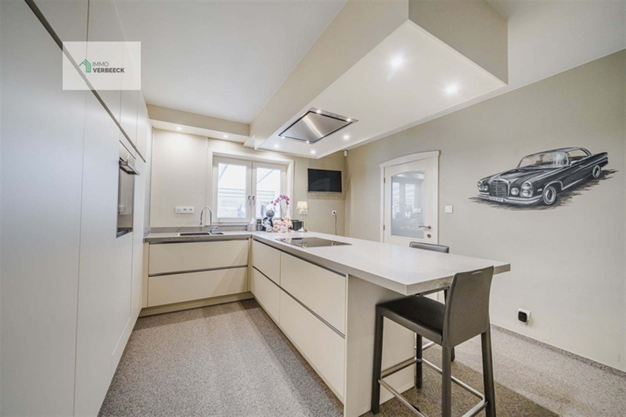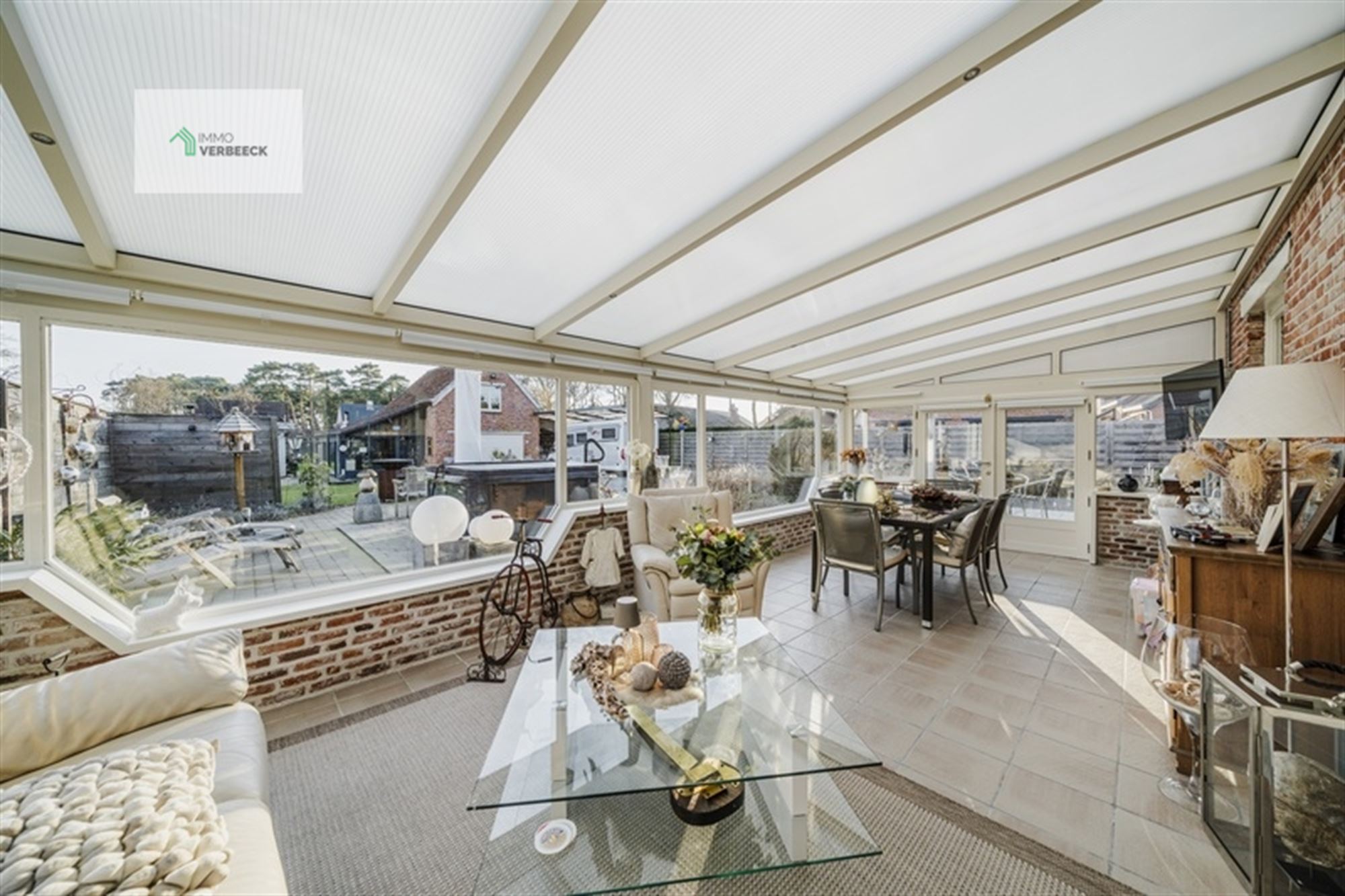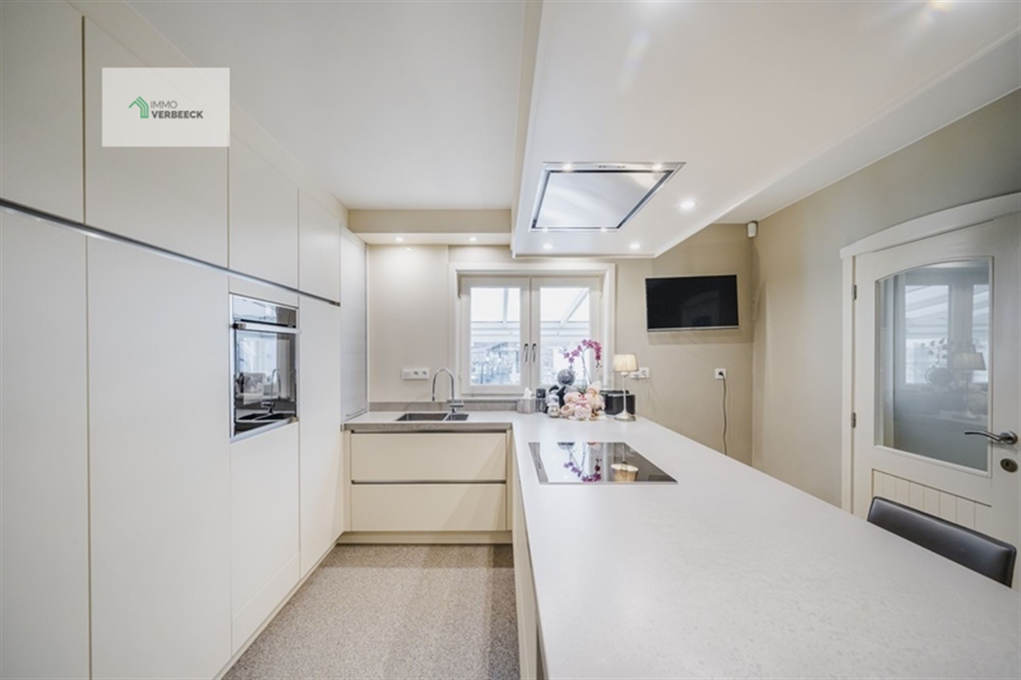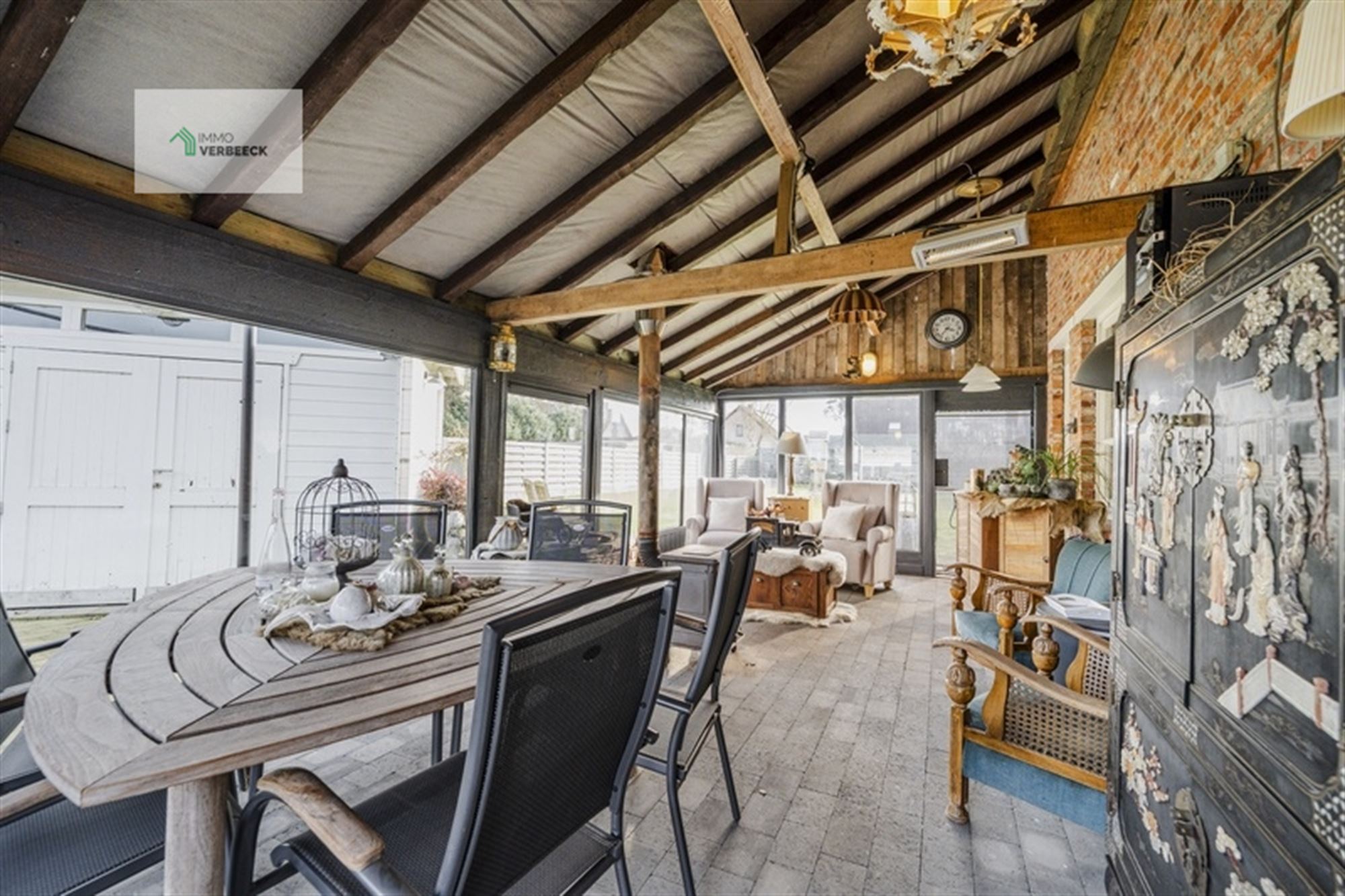 Het interieur weerspiegelt moderne inrichting met behoud van karakter. De eigentijdse keuken beschikt over hoogwaardige apparatuur, inclusief een ruim werkeiland en is voorzien van alle benodigde functies voor het bereiden van maaltijden. De open woonruimte op het gelijkvloers biedt voldoende plaats voor ontspanning, met directe toegang tot het grote terras met veranda en glazen schuifdeuren die het buiten- en binnenruimte naadloos verbinden.